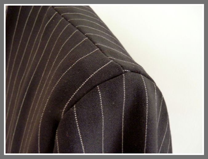 The pinstripes of the front and of the back are not exactly "in line". I have no idea if this would be a must. I have seen pictures of jackets from men's fashion shops with the same appearance, so I do not feel too bad about this.