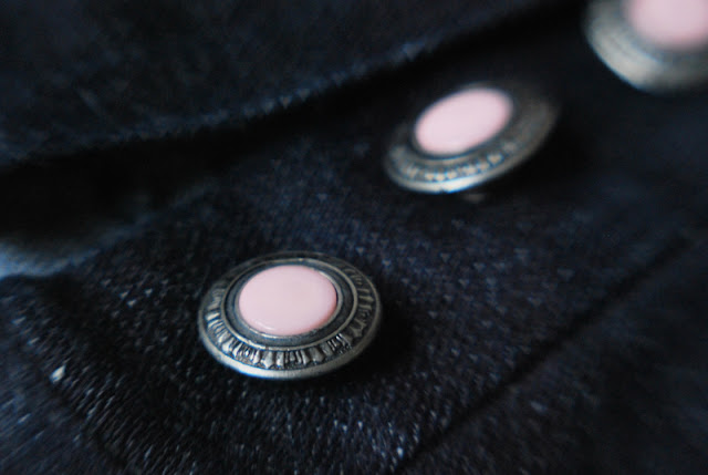 For the fly I used jeans buttons with kind of a rose centerpiece, items that are not visible from the outside, however, so it's only me who knows about them (and those few people who happen to read this, of course)