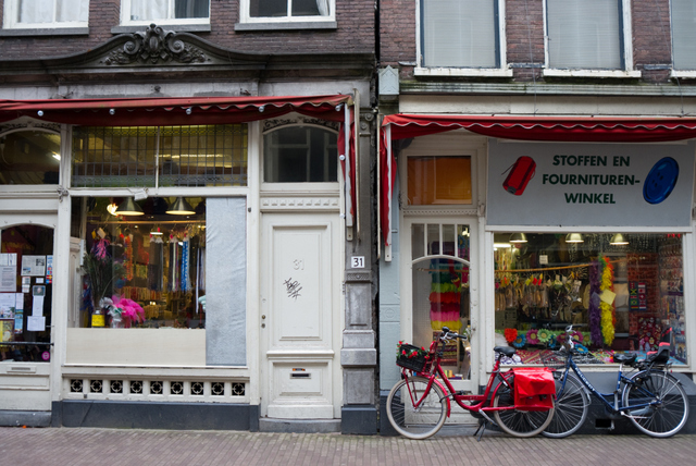 Tourists in Amsterdam, on a walk from Dam Square to the Rembrandthouse, will probably come along this fabric store in the Nieuwe Hoogstraat 31. It is my favorite.