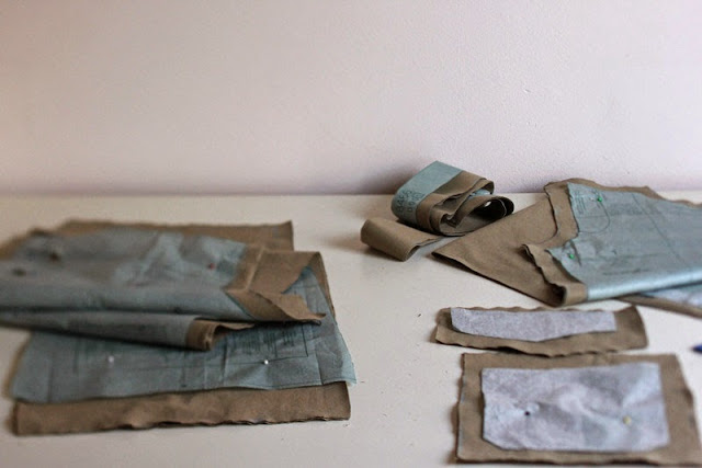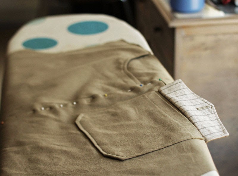 The trousers have been made from a khaki cotton fabric, on sale on a nearby market at a very reduced price. It's a jeans model, five pockets, rivets added..